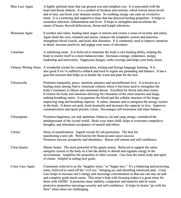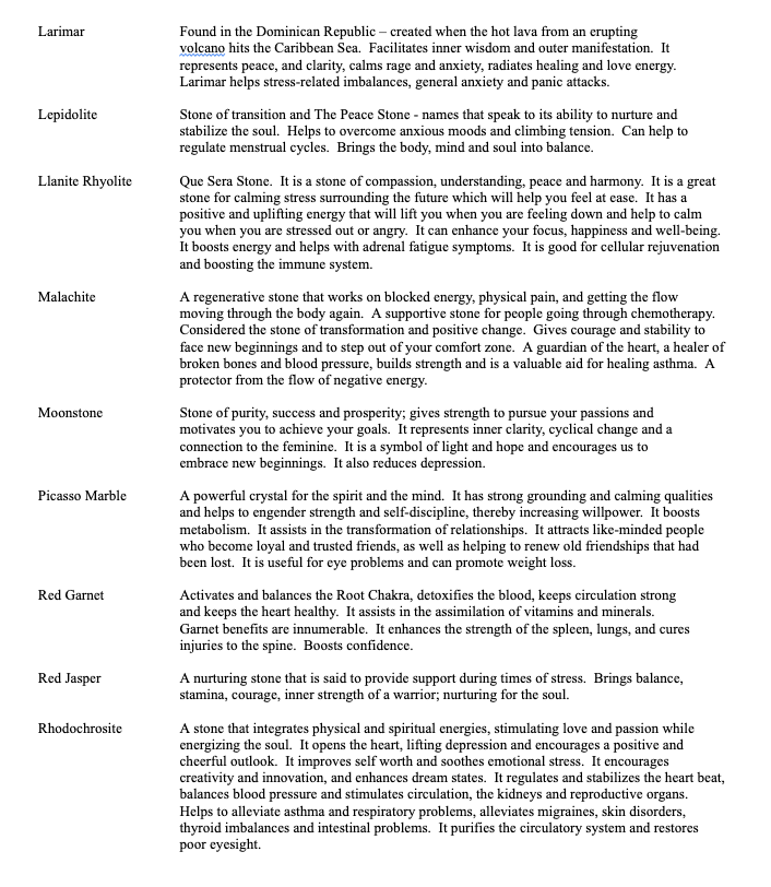 #34: Russian Amazonite, Moonstone, Rose Quartz, Rhodochrosite, Clear Quartz, Amethyst, Tiger’s Eye and Citrine